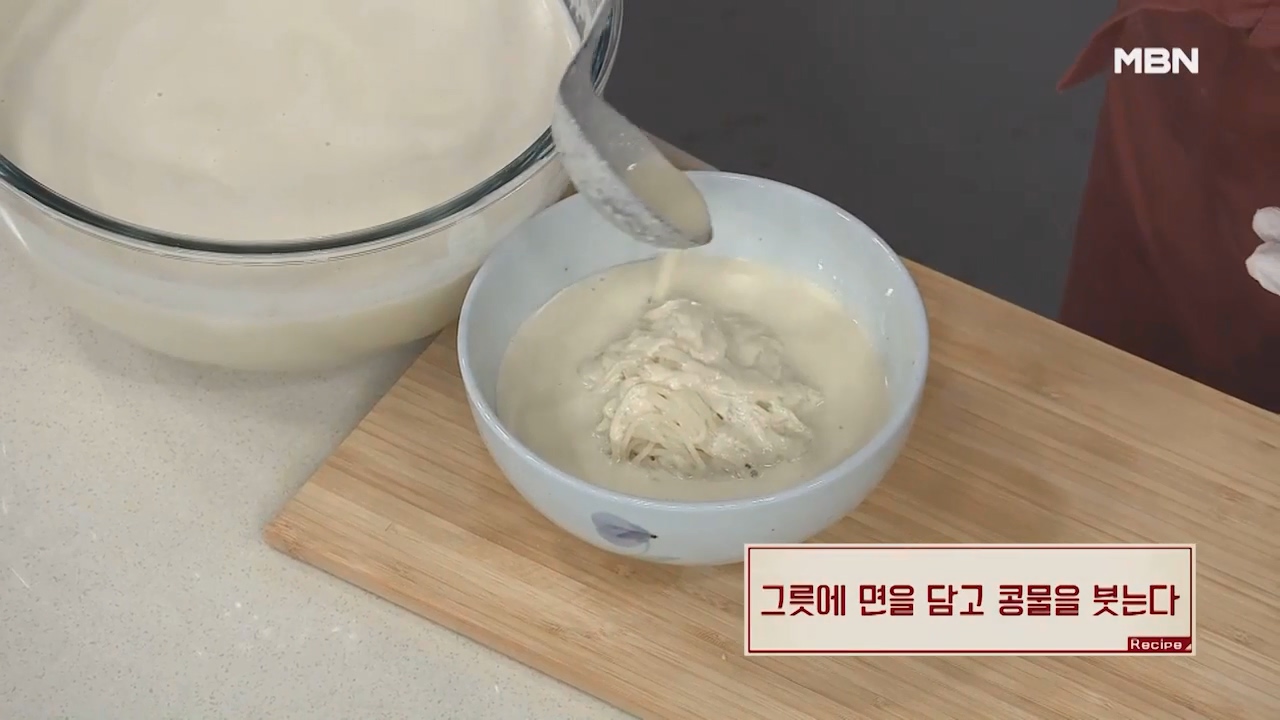 10. 그릇에 면을 담고 콩물을 붓어줍니다.