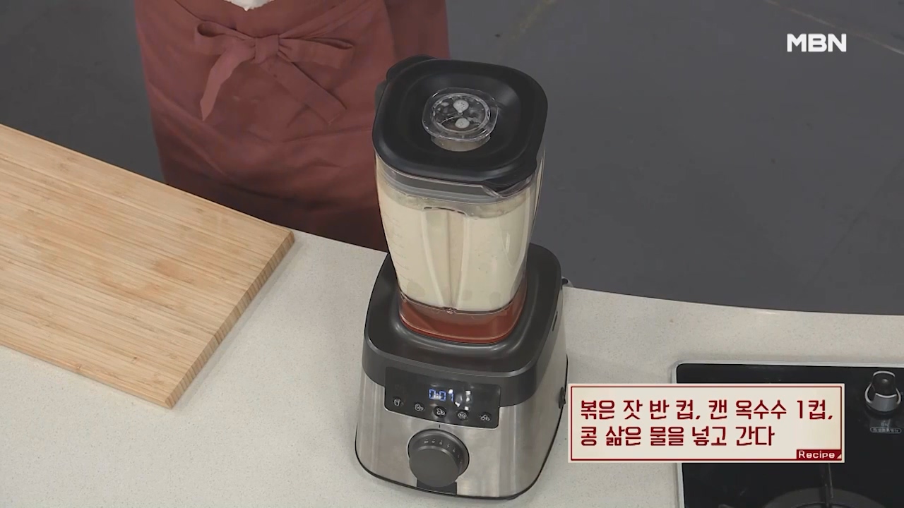 5. 믹서기에 삶은 백태와 볶은 참깨, 복은 땅콩, 볶은 잣 반컵, 캔 옥수수 1컵, 콩 삶은물을 넣고 갈아줍니다.