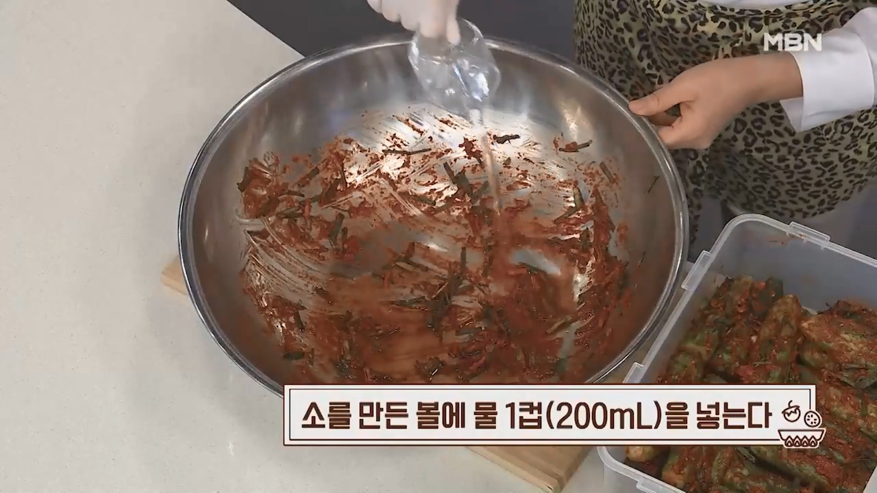 21. 국물을 밀폐용기에 넣으면 몰러지지 않는 오이소박이가 완성됩니다.
