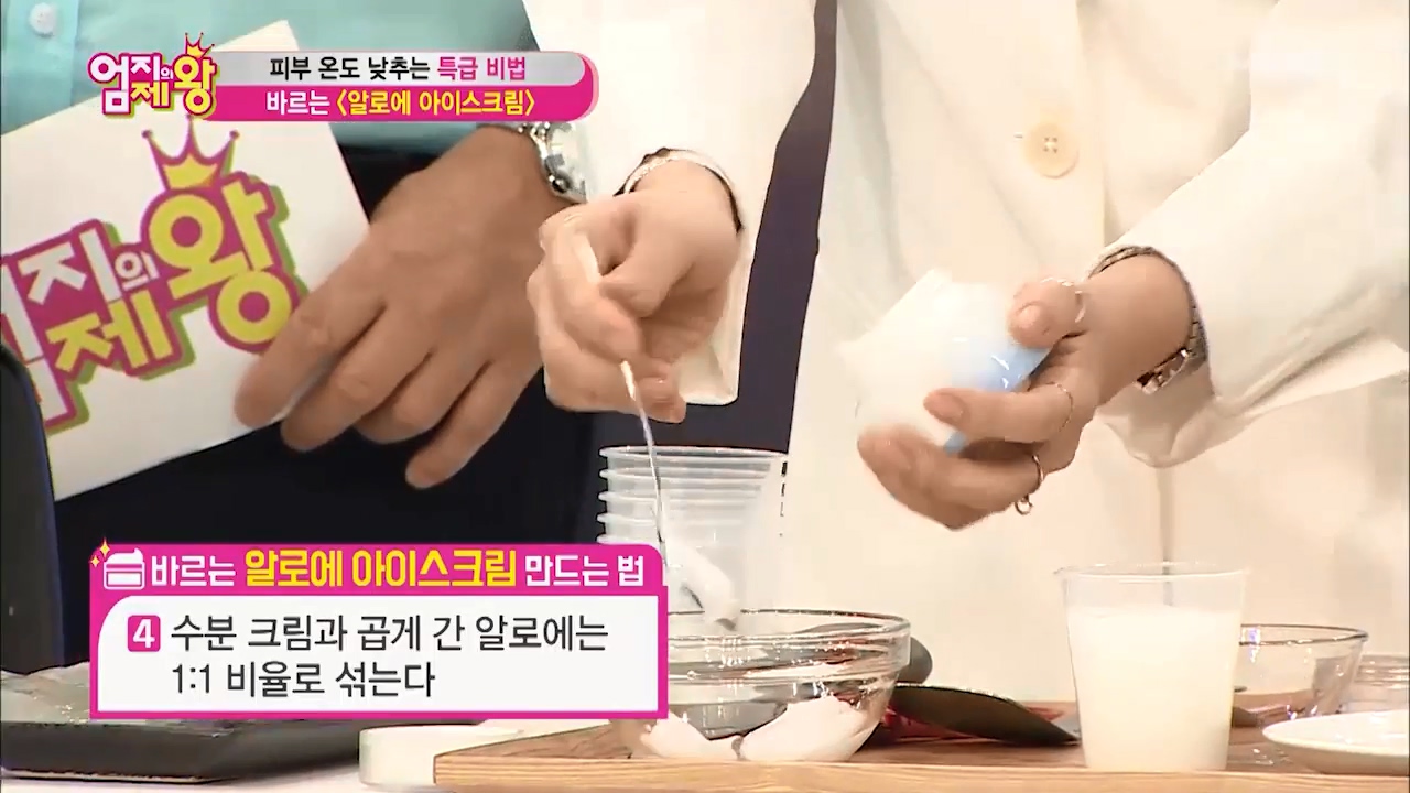 여름에 잠깐만 나가도 얼굴이 뜨겁고 화끈거리는데요. 이럴때 엄지의제왕에서 알려준 알로에 크림 천연화장품을 바르면 피부 온도를 내려주고 피부 재생효과도 있어서 피부건강에 도움을 준다고 합니다. 얼굴 쿨링 피부 재생에 좋은 알로에 크림 천연 화장품을 바르셔서 올 여름 피부 건강 지키세요.
