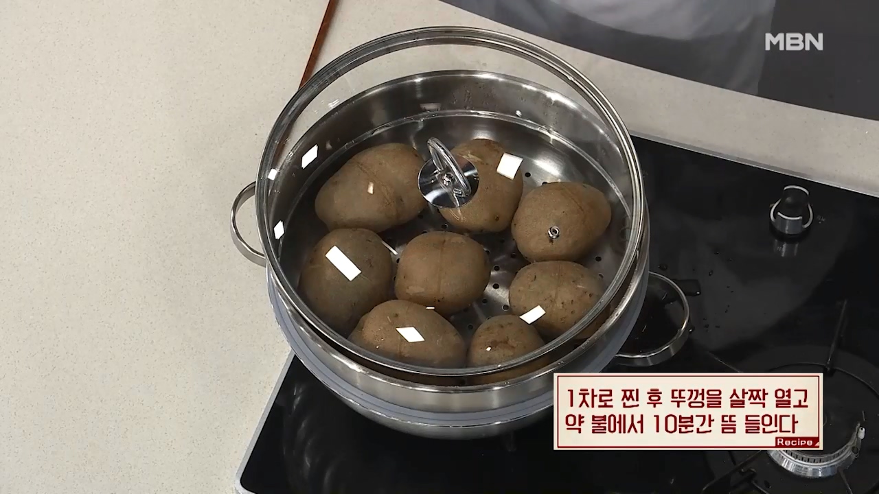 4. 1차로 찐 후 뚜껑을 살짝 열고 약불에서 10분간 뜸을 들이면 맛있게 감자를 찔 수 있습니다.