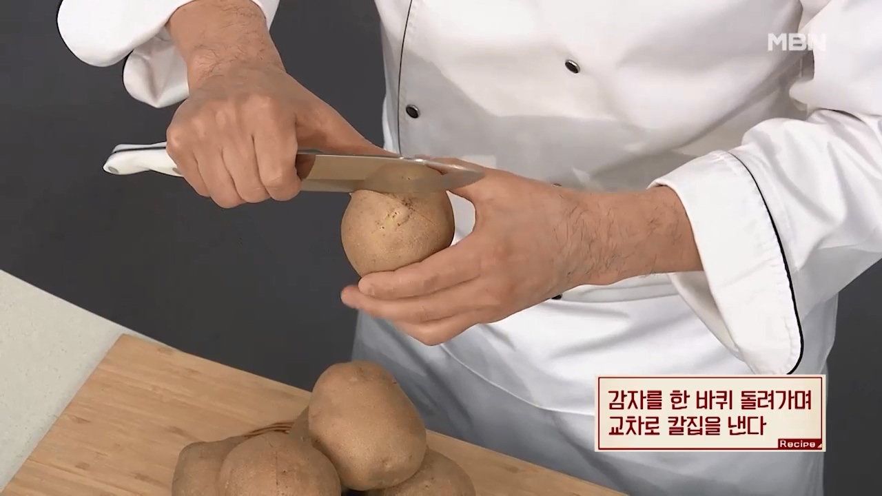 1. 감자를 한 바퀴 돌려가며 교차로 칼집을 냅니다.