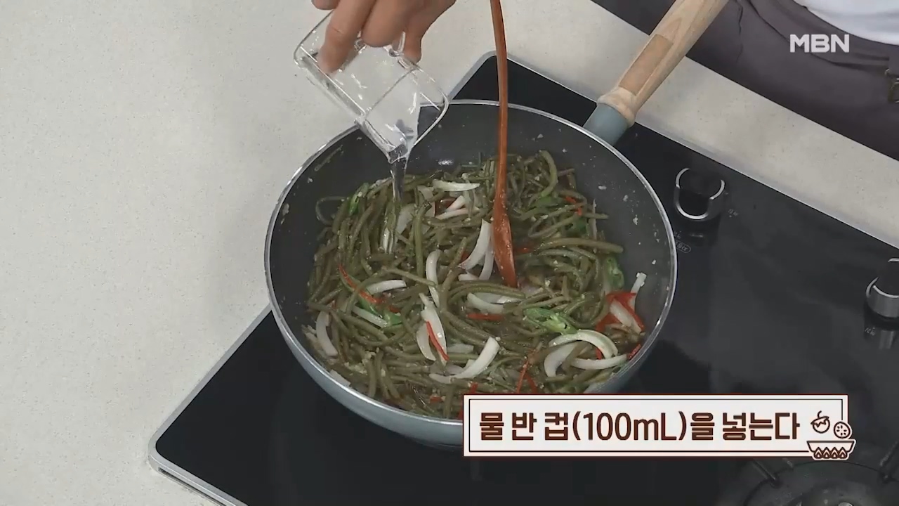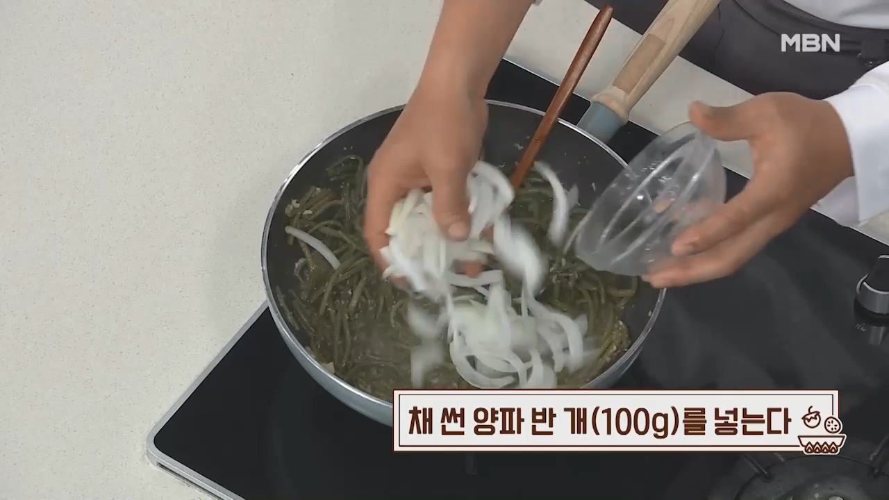 8. 채 썬 양파 반개(100g)를 넣습니다.
