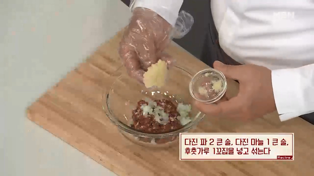 6. 다진 파 2큰술, 다진 마늘 1큰술, 후춧가루 1꼬집을 넣고 잘 섞어 줍니다.