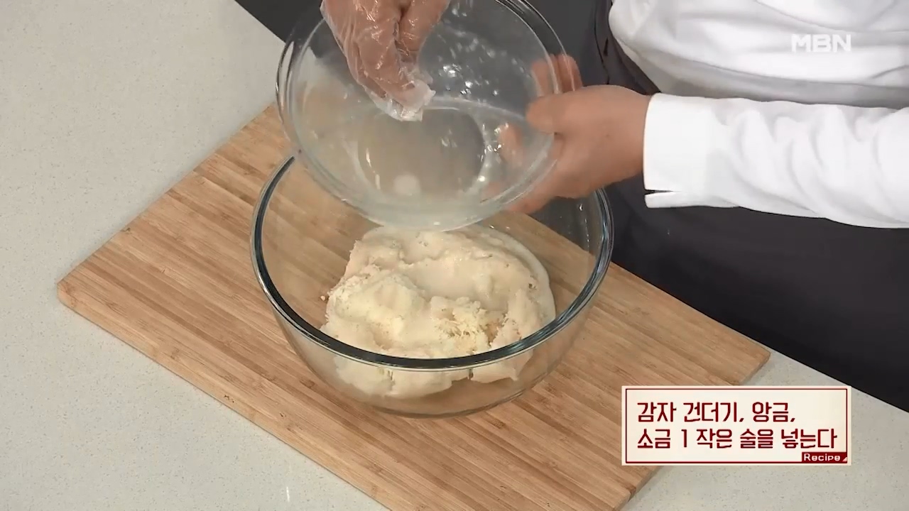 3. 감자건더기, 앙금, 소금 1작은술을 넣어줍니다.