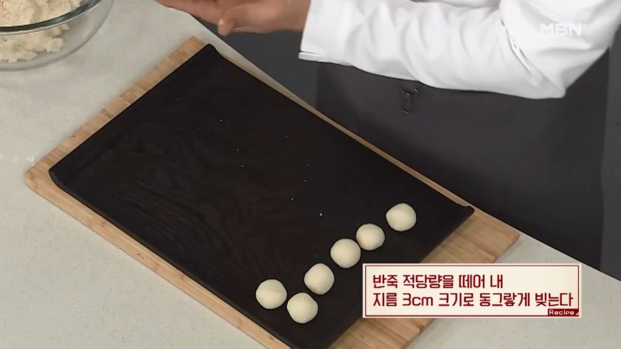 5. 감자옹심이 반죽을 적당량을 떼어내 지름 3cm 크기로 동그랗게 만듭니다.