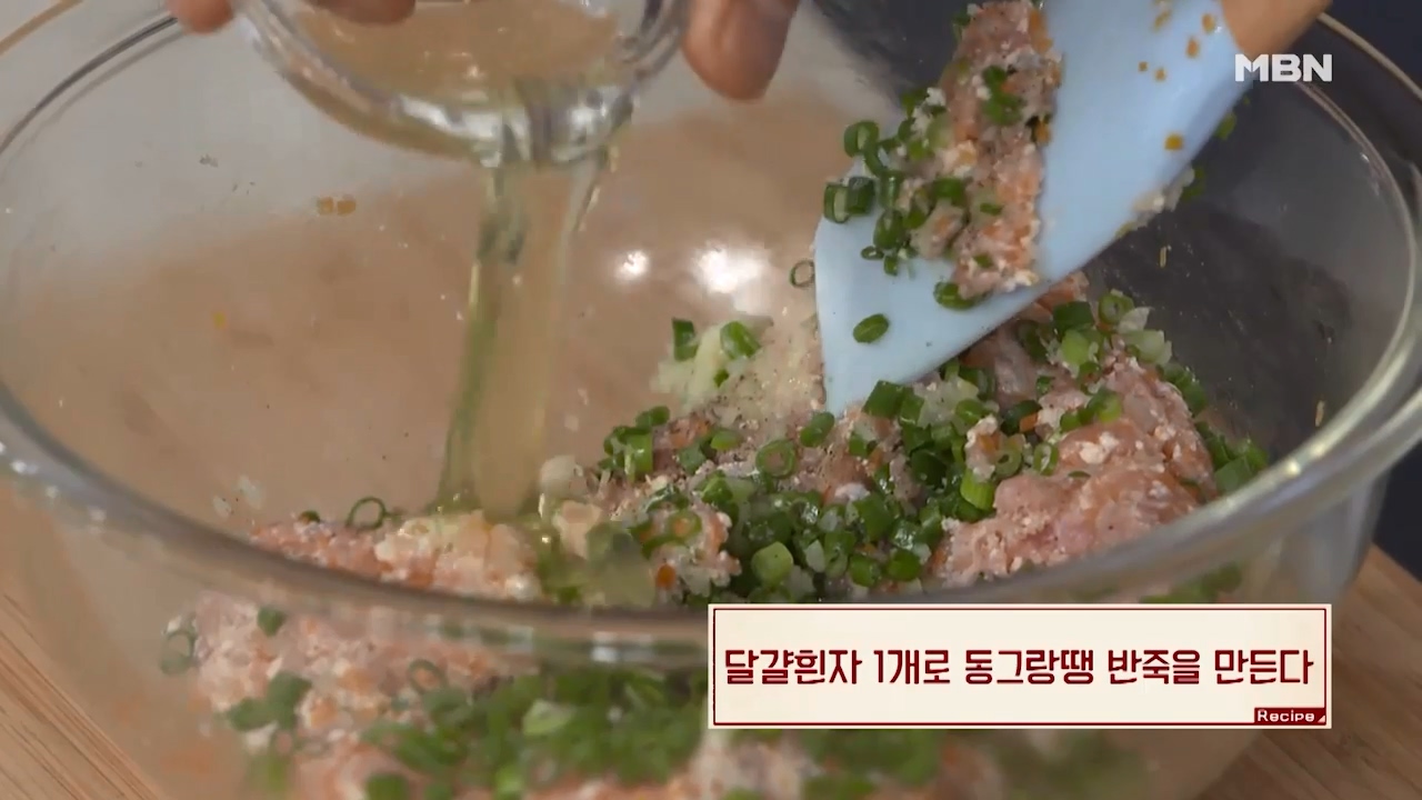 4. 달걀흰자 1개를 동그랑땡 반죽에 넣어 반죽해줍니다.