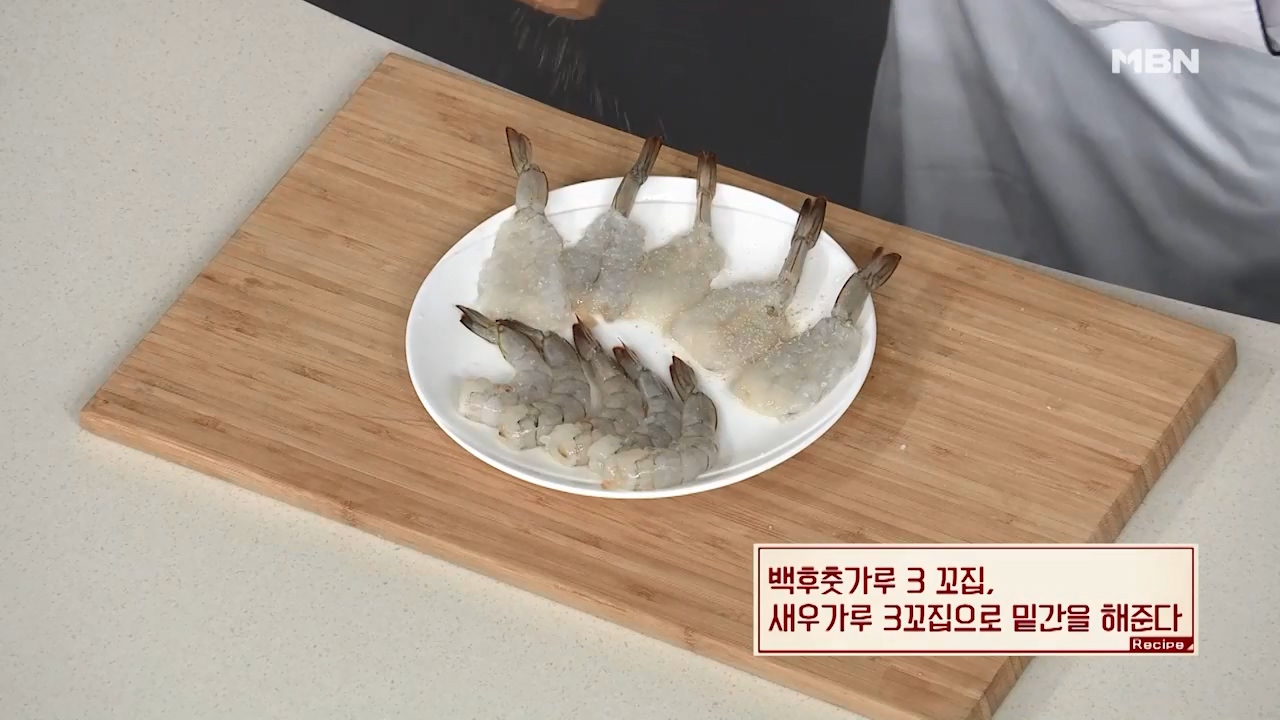 4. 백후춧가루 3꼬집, 새우가루 3꼬집으로 밑간을 해줍니다.