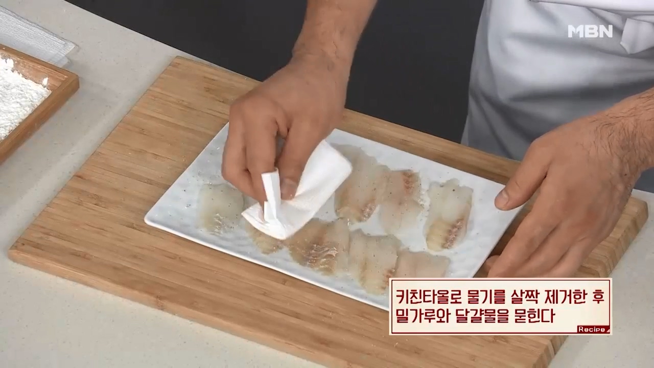 3. 키친타올로 물기를 살짝 제거한 후 밀가루와 달걀물을 묻힙니다.