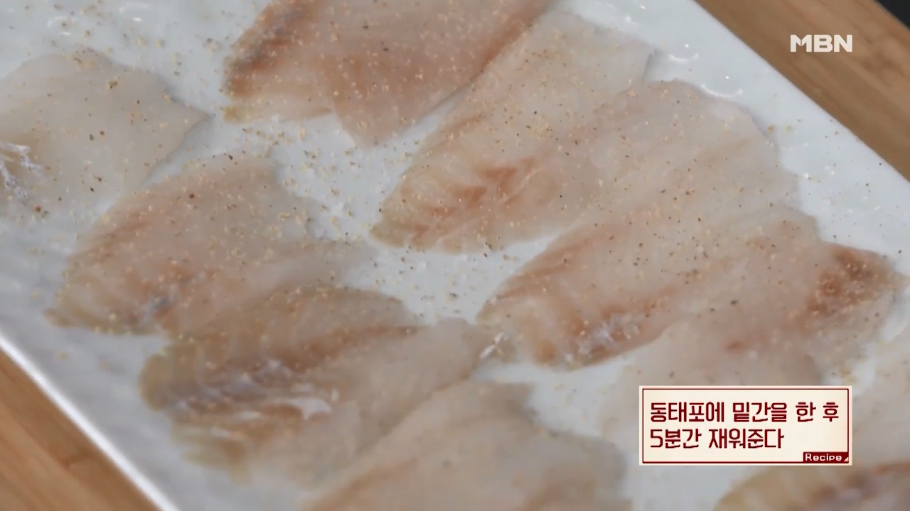 2. 동태포에 밑간을 한 후 5분간 재워줍니다.