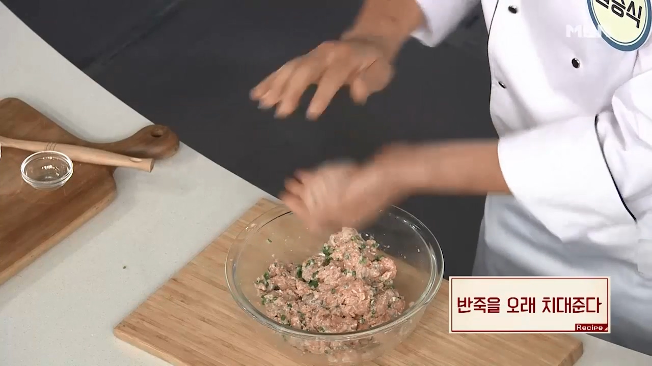 5. 동그랑땡 반죽을 오래 치대줍니다.