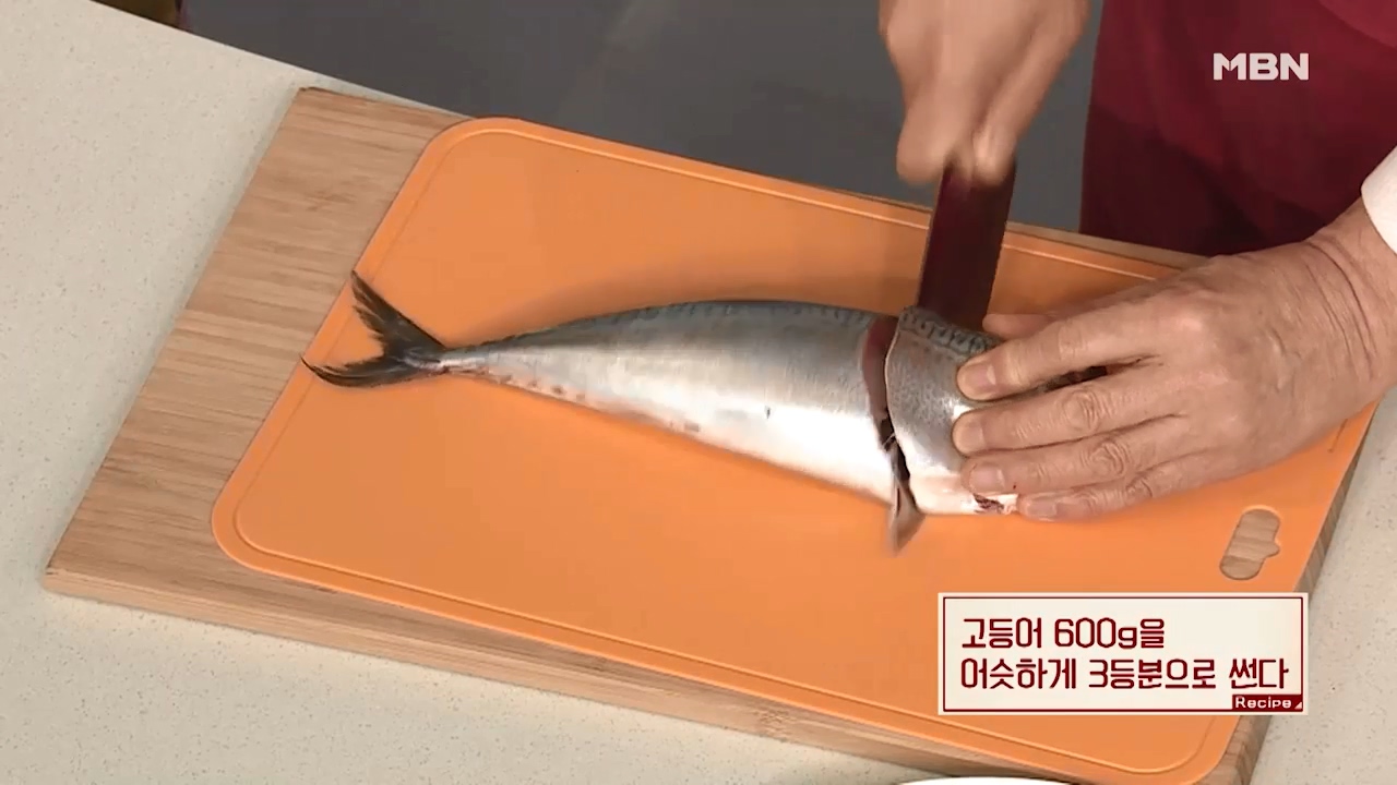 5. 고등어 600g을 어슷하게 3등분으로 썰어줍니다.