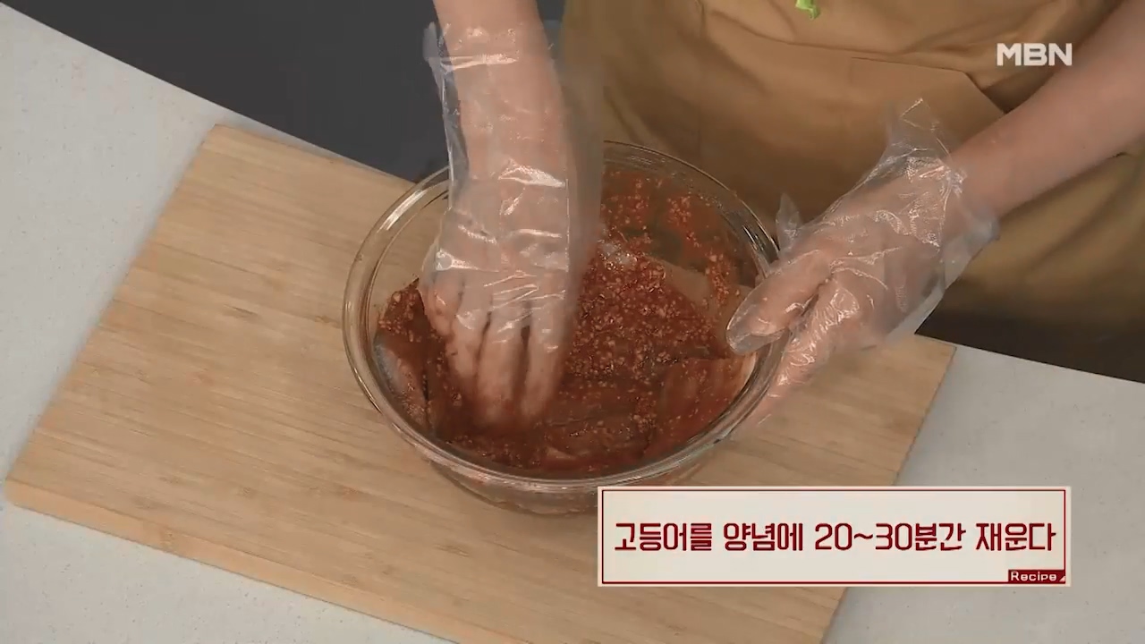 6. 고등어를 양념에 20~30분간 재워줍니다.