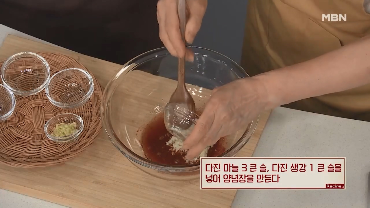 5. 다진마늘 3큰술, 다진 생강 1큰술을 넣어 양념장을 만들어줍니다.