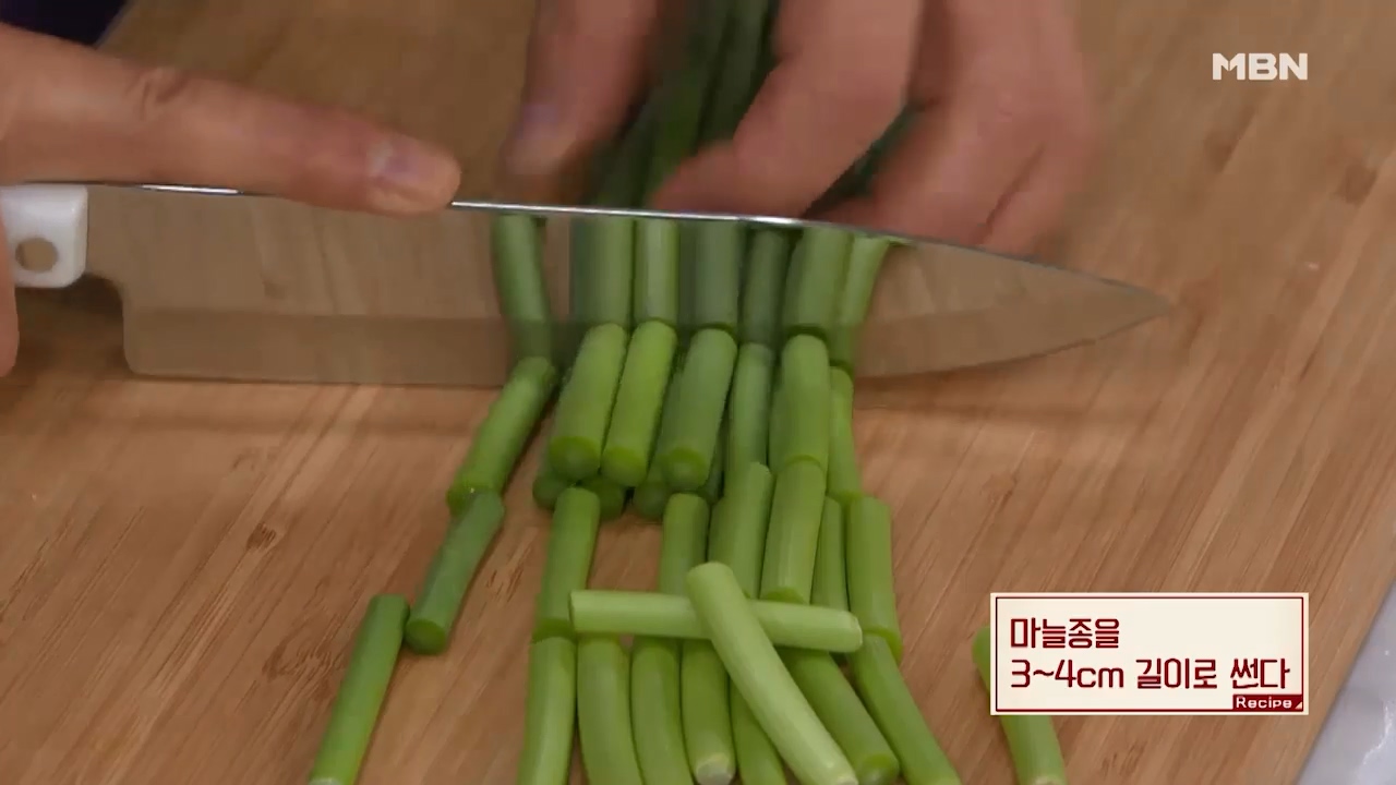 4. 마늘종을 3~4cm 길이로 썰어줍니다.