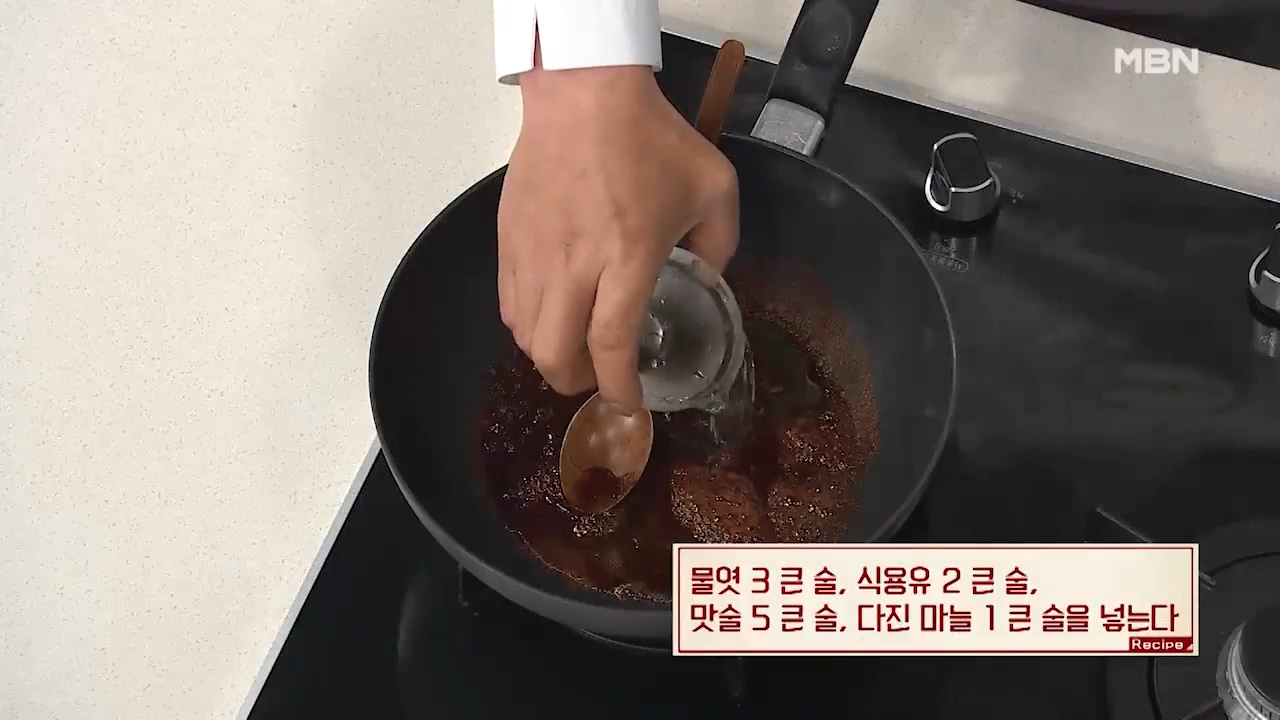 4. 물엿 3큰술, 식용유 2큰술, 맛술 5큰술, 다진마늘 1큰술을 넣습니다.