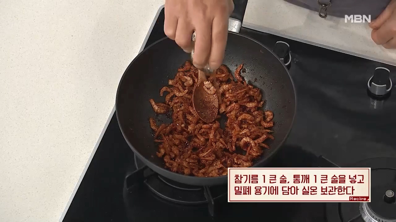 11. 양념한 건새우를 꺼내 식혀줍니다.
