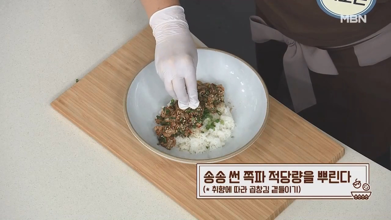 22. 송송 썬 쪽파 적당량을 뿌리고 취향에 따라 곱창김을 곁들이면 맛있는 꼬막비빔밥을 먹을 수 있습니다.