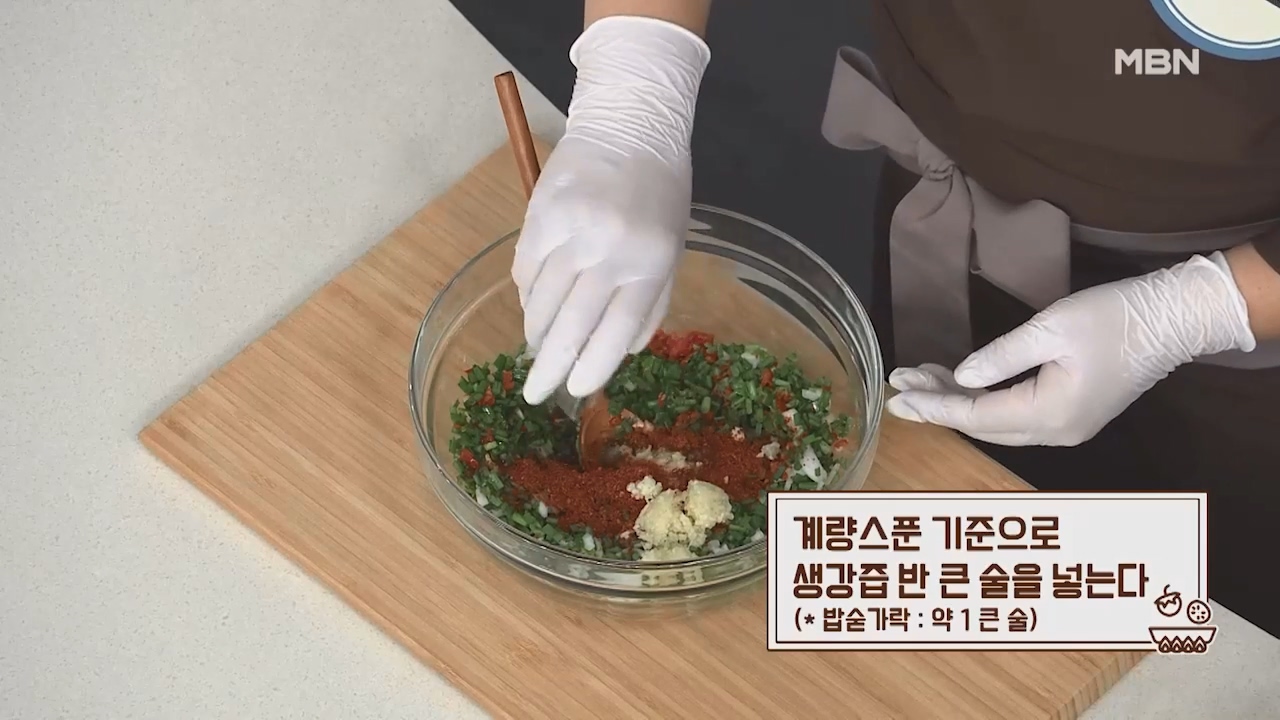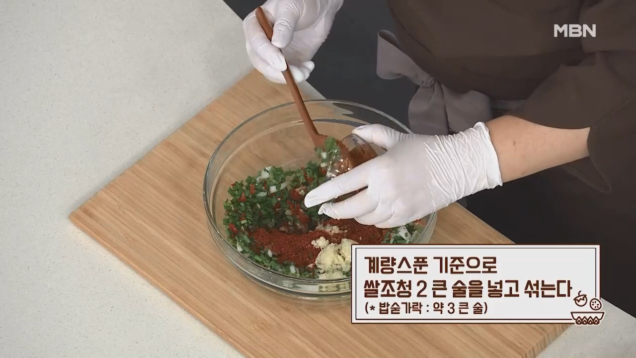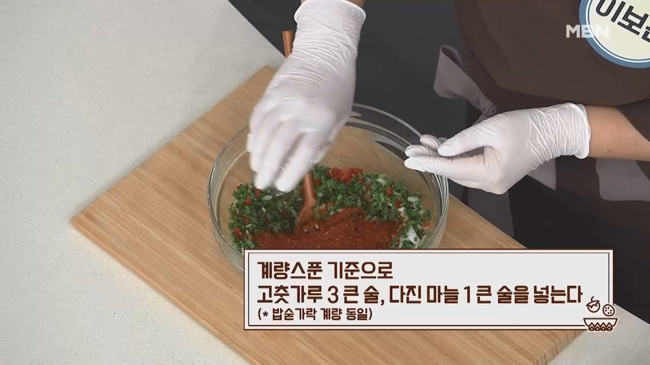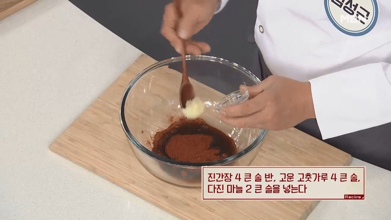 15. 계량스푼 기준으로 고춧가루 3큰술, 다진마늘 1큰술을 넣습니다. (밥숟가락 계량 동일)