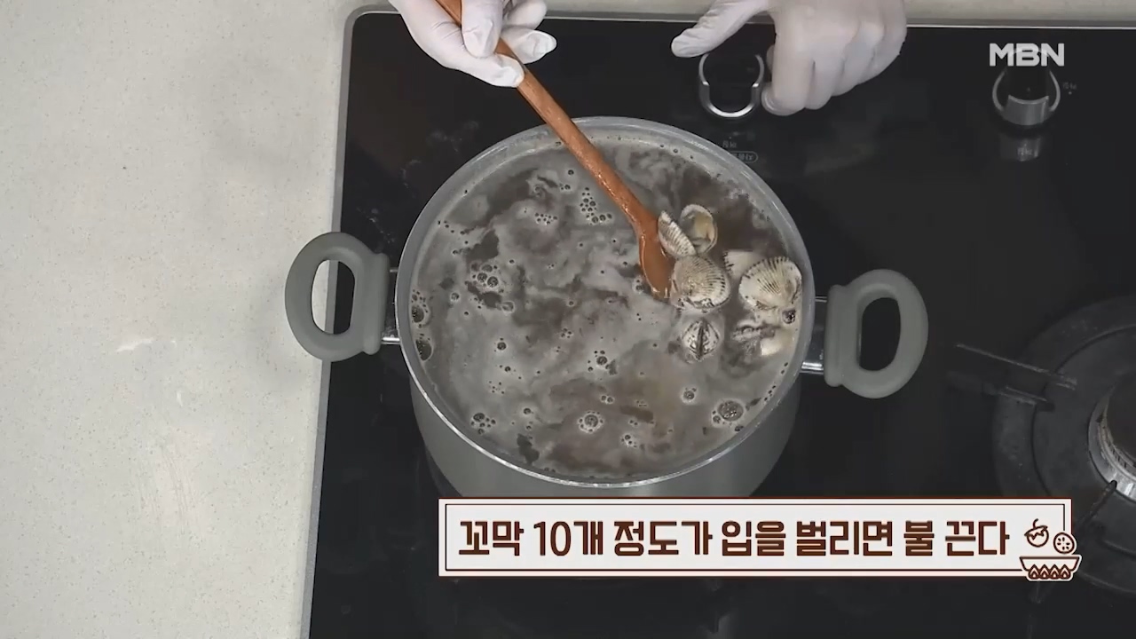 9. 꼬막 10개 정도가 입을 벌리면 불을 끕니다.