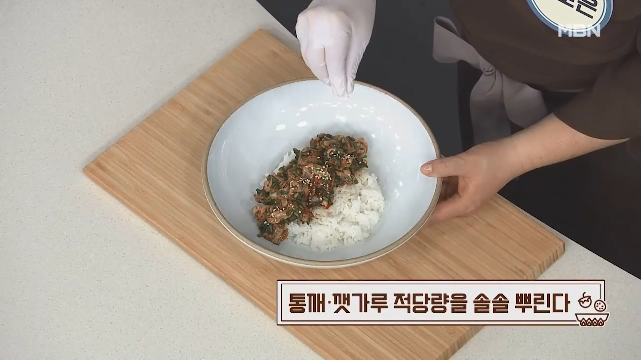 19. 살짝 식은밥 위에 꼬막무침을 넉넉히 올립니다.