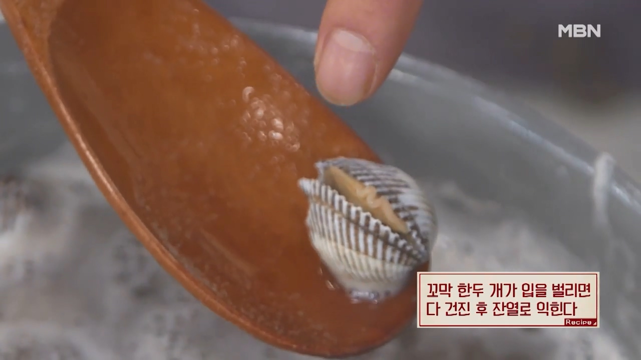 3. 꼬막 한두개가 입을 벌리면 다 건진 후 잔열로 익혀줍니다.