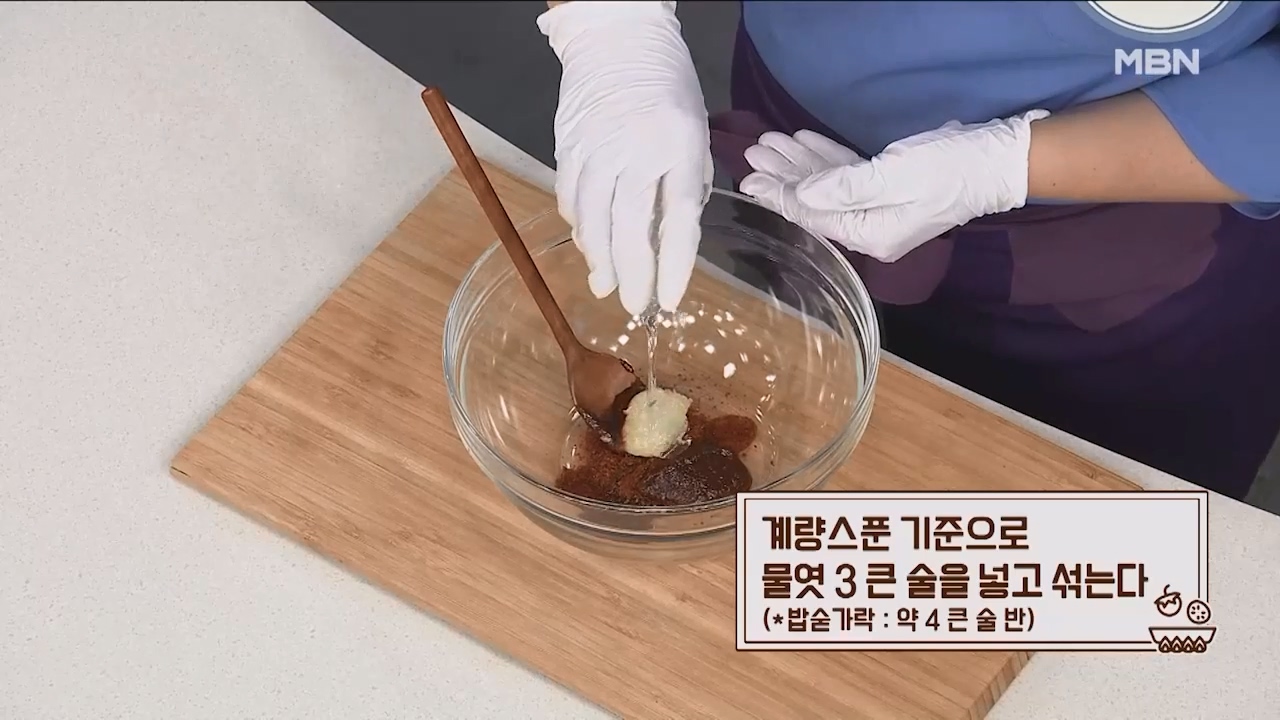 7. 계량스푼 기준으로 물엿 3큰술을 넣고 섞어줍니다. (밥숟가락 약 4큰술 반)