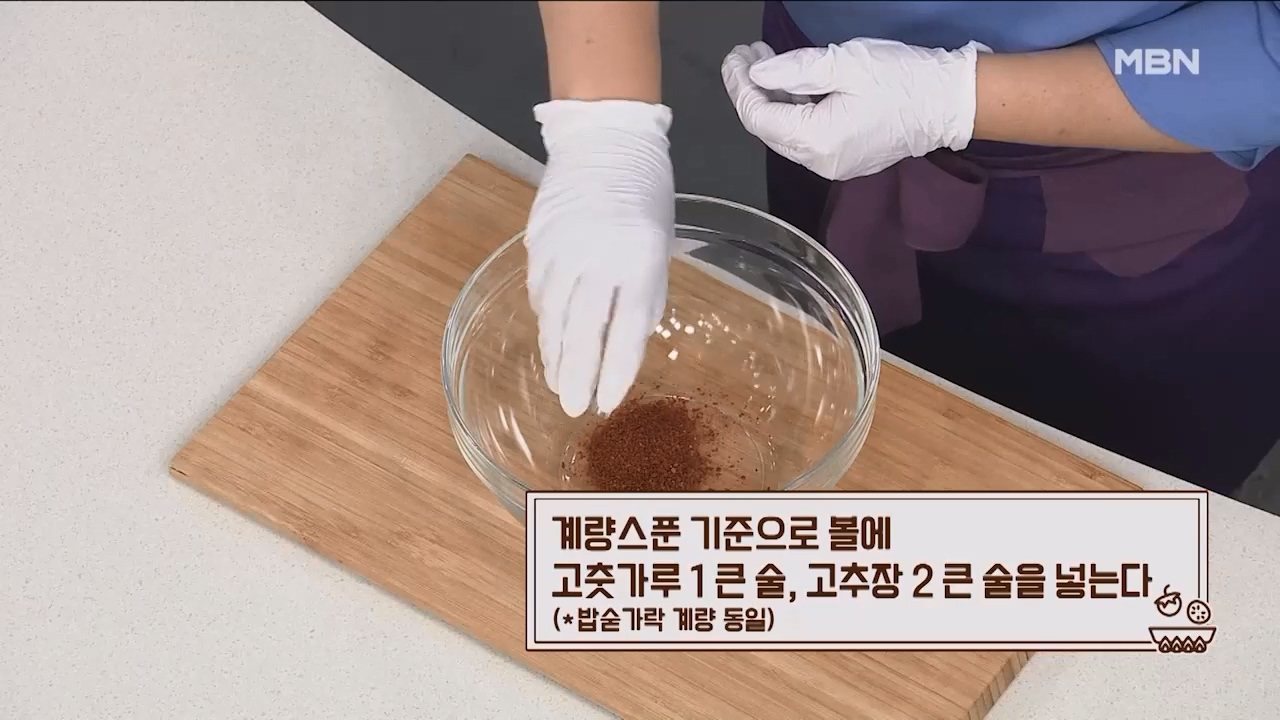 4. 계량스푼 기준으로 볼에 고춧가루 1큰술, 고추장 2큰술을 넣습니다. (밥숟가락 계량동일)