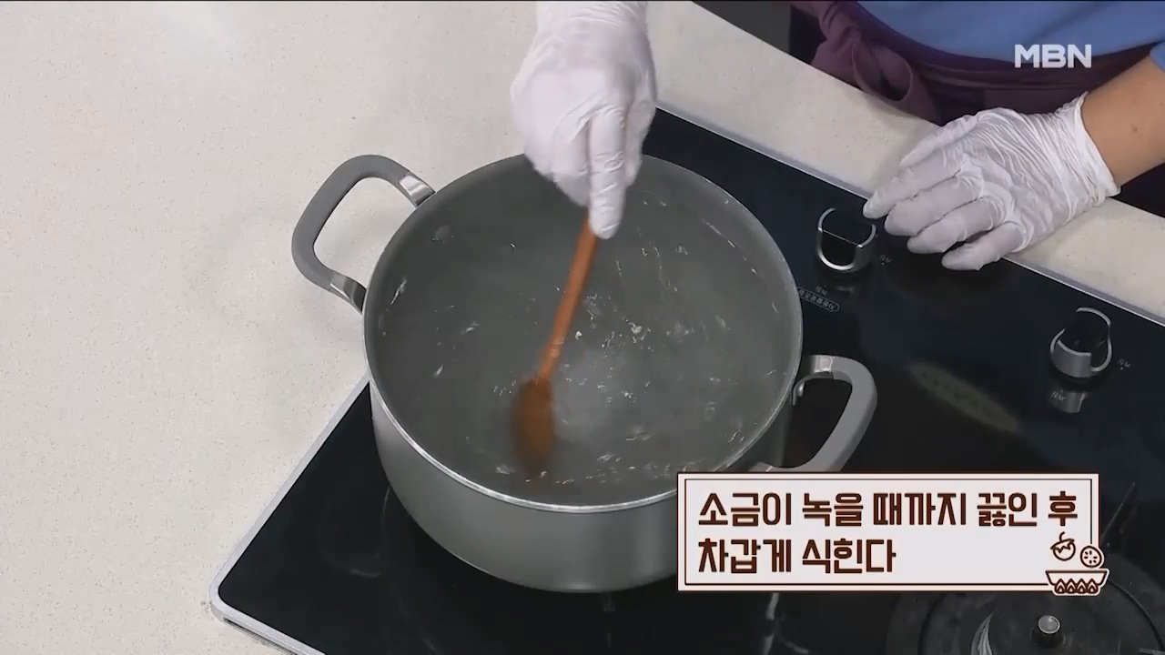 5. 소금이 녹을때까지 끓인 후 차갑게 식힙니다.