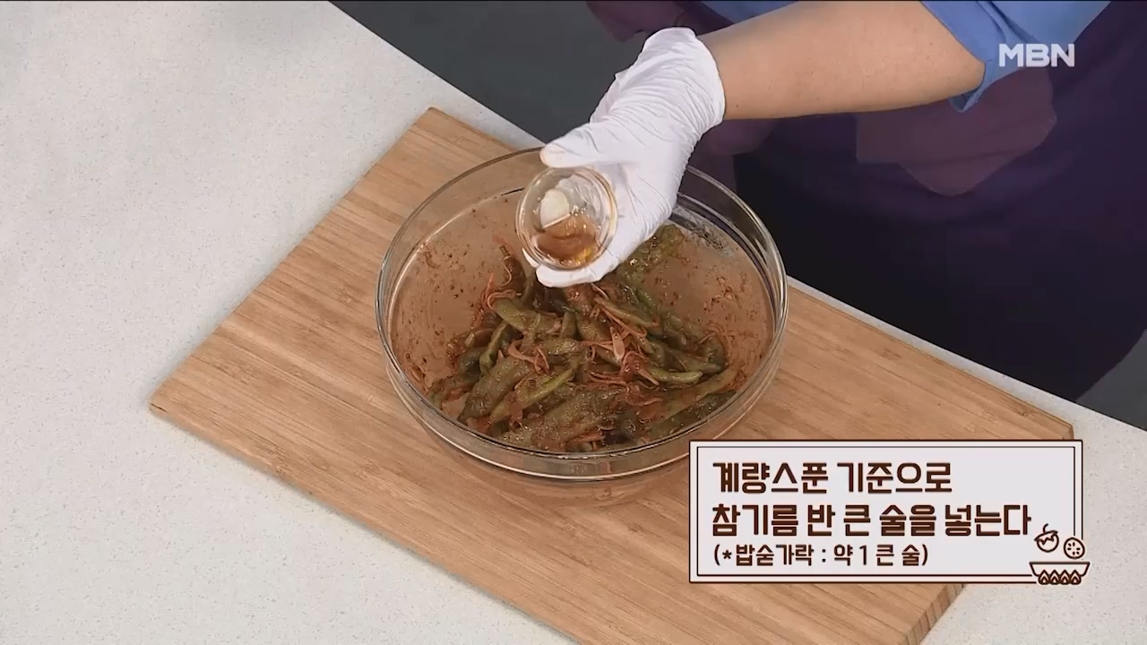 10. 계량스푼 기준으로 참기름 반큰술을 넣습니다. (밥숟가락 약 1큰술)
