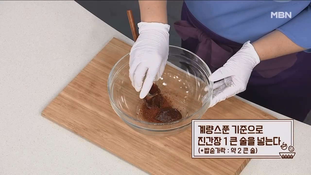 5. 계량스푼 기준으로 진간장 1큰술을 넣습니다. (밥숟가락 약 2큰술)