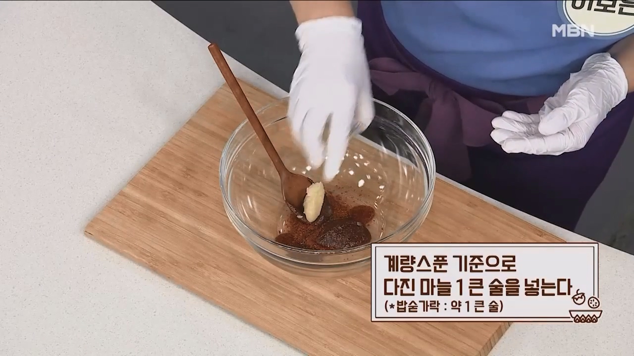6. 계량스푼 기준으로 다진 마늘 1큰술을 넣습니다. (밥숟가락 약 1큰술)