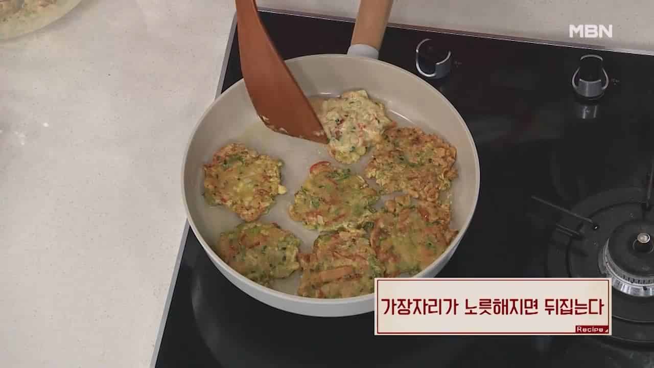 7. 멍게전 가장자리가 노릇해지면 뒤집어 노릇하게 익혀주면 맛있는 멍게전이 완성됩니다.
