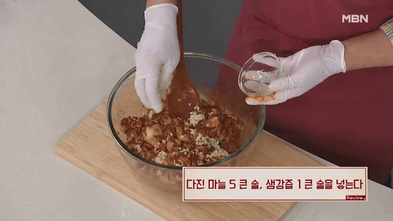 5. 다진 마늘 5큰술, 생강즙 1큰술을 넣어줍니다.