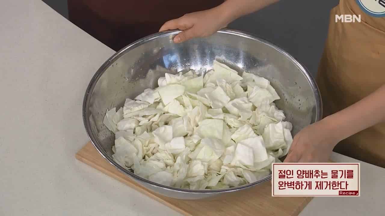 5. 절인 양배추는 물기를 완벽하게 제거합니다.