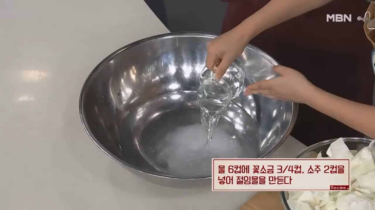 3. 물 6컵에 꽃소금 3/4컵, 소주 2컵을 넣어 절임물을 만들어 줍니다.