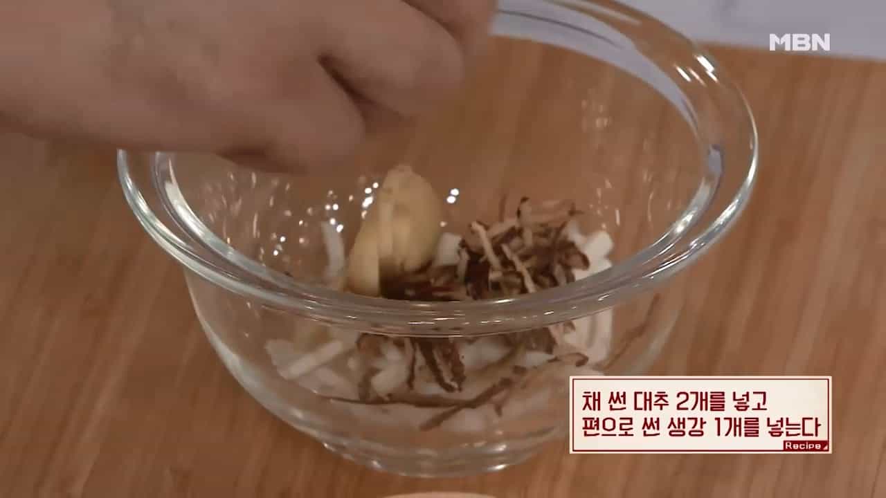 4. 채 썬 대추 2개를 넣고 편으로 썬 생강 1개를 넣어줍니다.