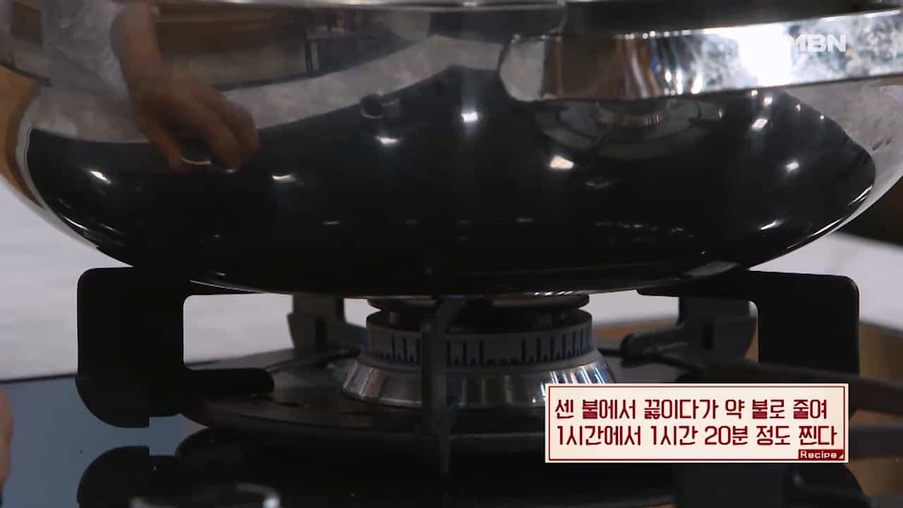 8. 센불에서 끓이다가 약불로 줄여 1시간에서 1시간 20분 정도 찝니다.