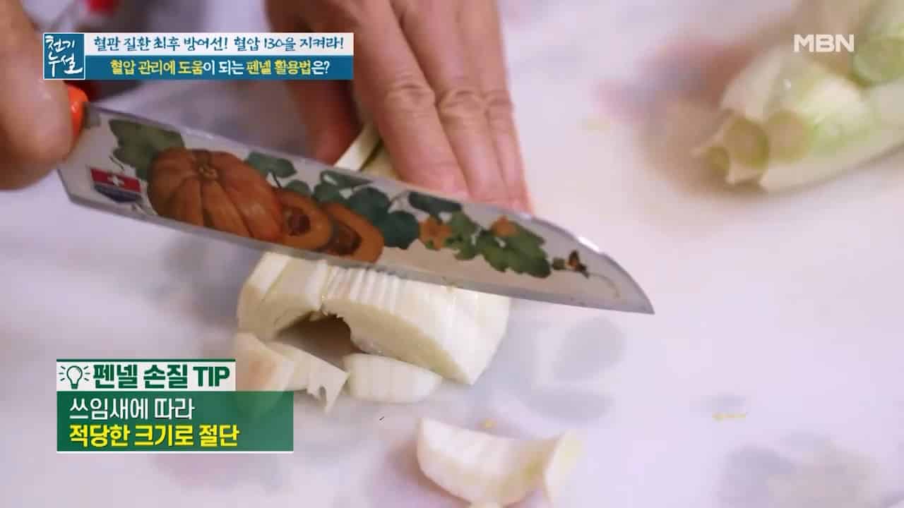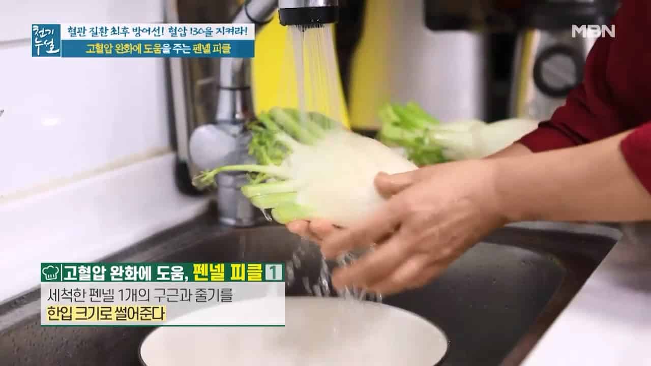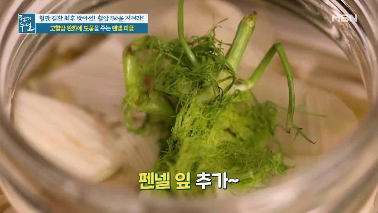 천기누설에서 알려준 고혈압에 좋은 펜넬주스와 펜넬 피클 만드는법에 대해서 알아보려고 합니다. 펜넬은 지중해 연안과 유럽에서 양념 채소로 유명하다고 하는데요. 펜넬은 달콤한 맛과 상큼한 향으로 기름기를 중화하는 식재료라고 합니다. 펜넬은 동의보감에 회향이라고 기록되어 있는데 펜넬이 위와 장의 기능을 활발하게 해준다고 합니다. 펜넬 속에는 혈관 건강에 도움이 되는 아네톨 성분이 풍부한데 아네톨은 에스트로겐의 기능을 조절하는 효과가 있어 혈관손상을 방지하고 고혈압을 예방하는데 도움이 된다고 합니다. 그리고 펜넬에 풍부한 칼륨성분은 몸속의 나트륨을 배출시키고 혈압을 올려주는 호르몬인 레닌의 활성을 억제해 고혈압을 낮추는데 도움을 준다고 합니다.