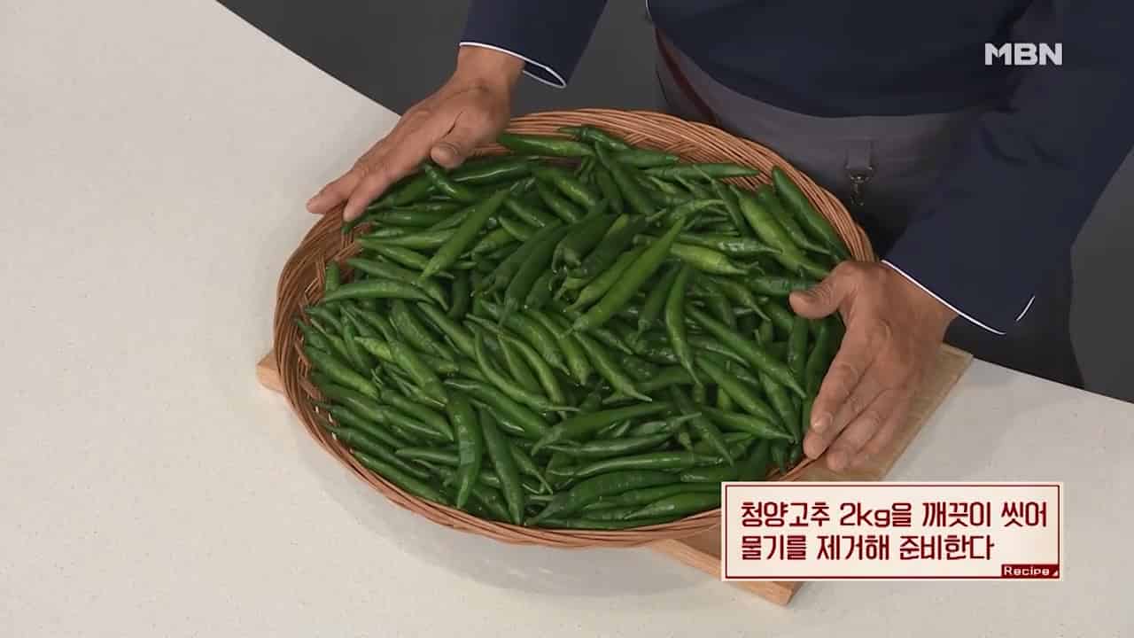 1. 청양고추 2kg을 깨끗이 씻어 물기를 제거해 준비합니다.