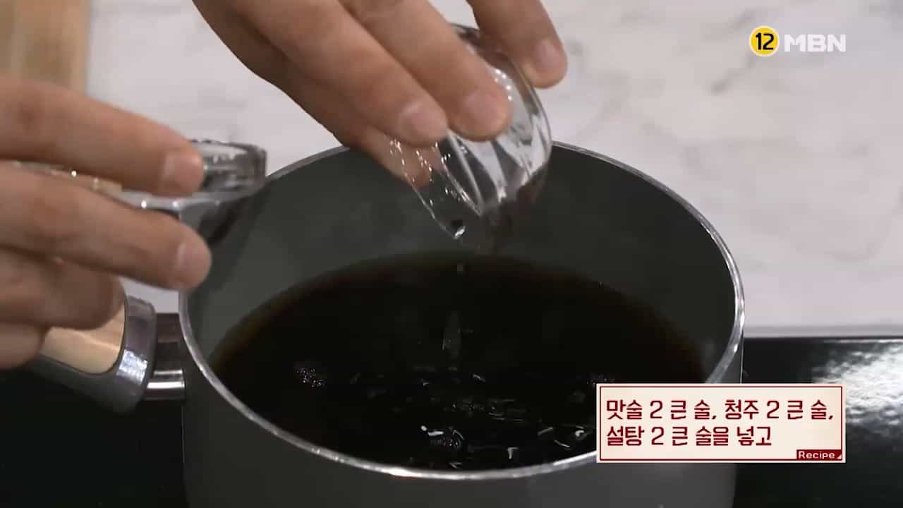 2. 맛술 2큰술, 청주 2큰술, 설탕 2큰술을 넣습니다.