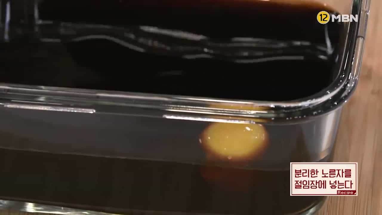 9. 분리한 노른자를 절임장에 넣습니다.