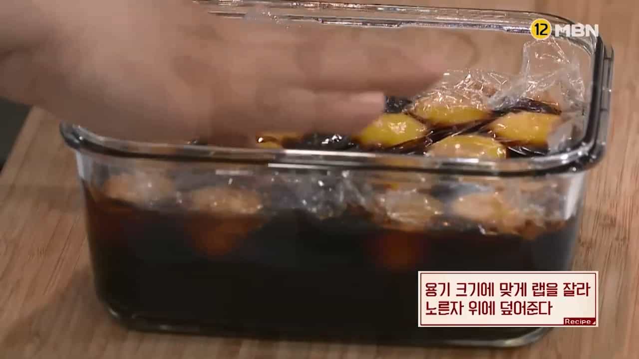 11. 5시간 숙성된 달걀장의 랩을 벗겨내면 맛있는 계란장이 완성됩니다.
