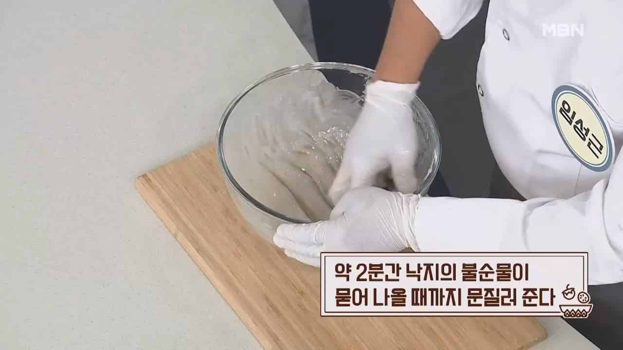 3. 약 2분간 낙지의 불순물이 묻어 나올때까지 문질러 줍니다.