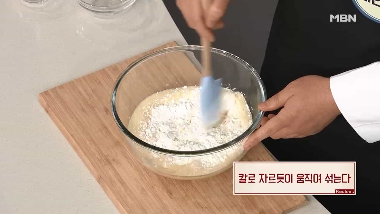 5. 칼로 자르듯이 주걱을 움직여 잘 섞어 줍니다.