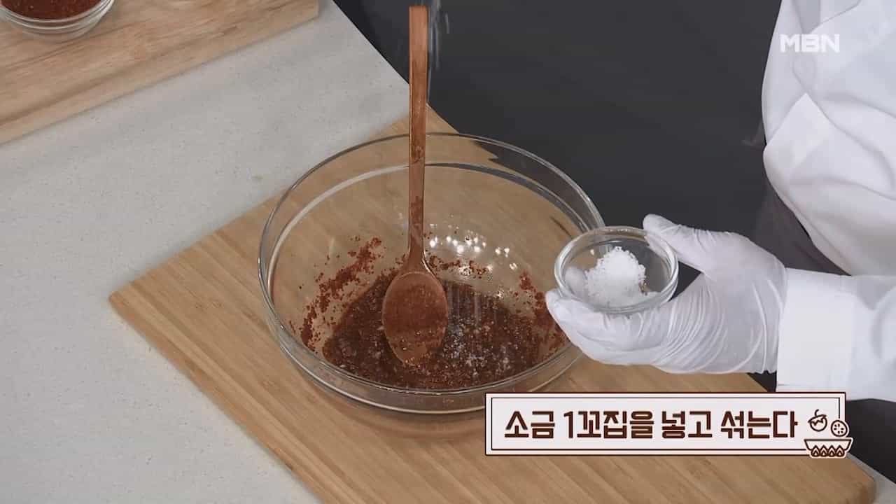 5. 소금 1꼬집을 넣고 섞어줍니다.