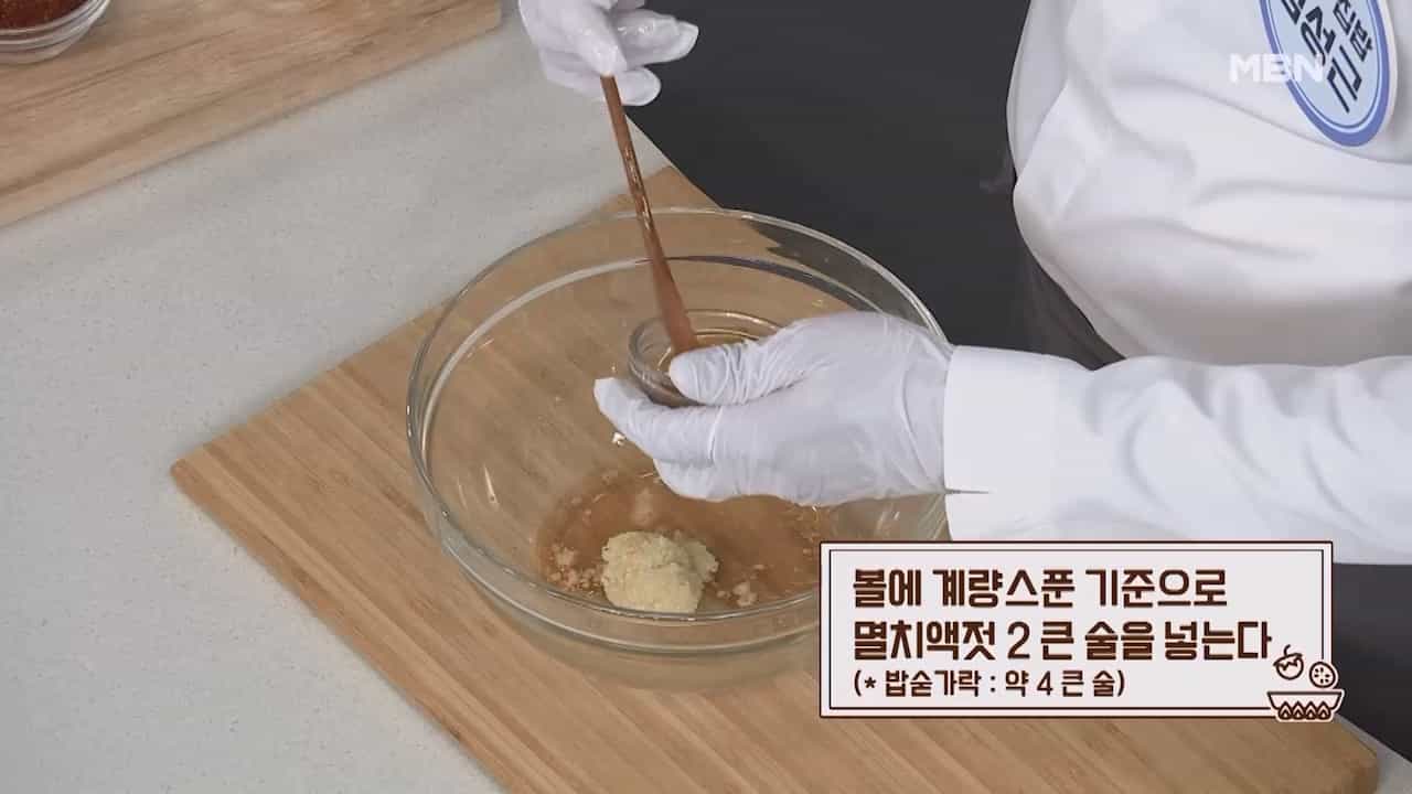 2. 볼에 계량스푼 기준으로 멸치액젓 2큰술을 넣어줍니다. (밥숟가락 약 4큰술)
