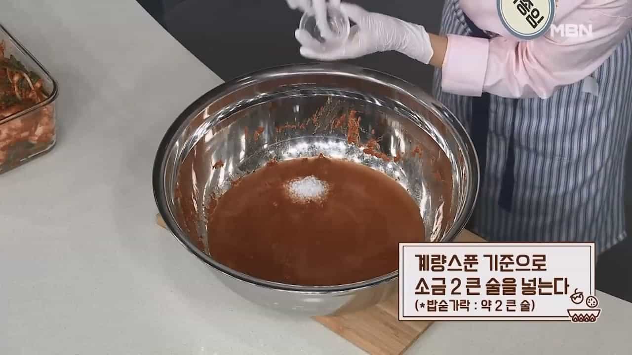 17. 계량스푼 기준으로 소금 2큰술을 넣습니다. (밥숟가락 약 2큰술)