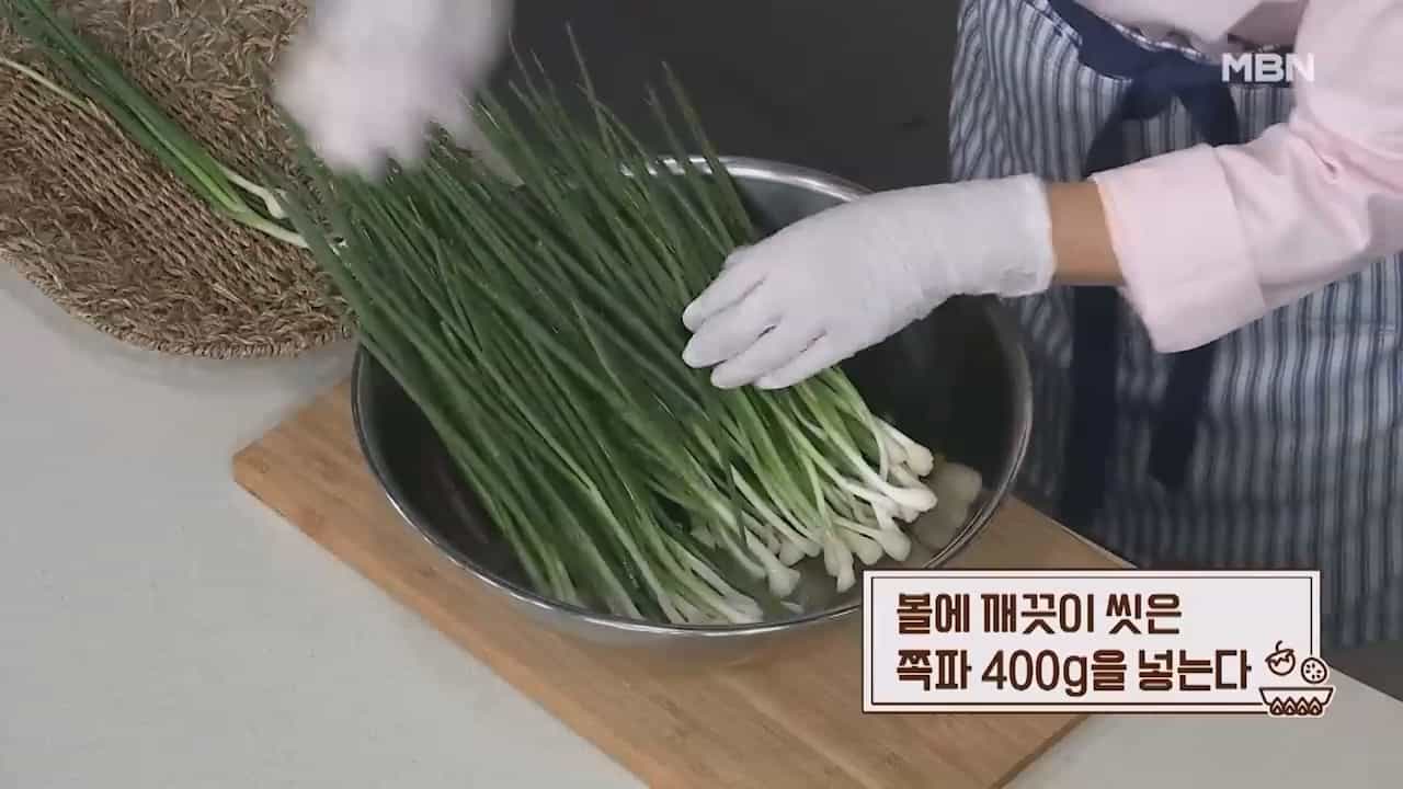 5. 볼에 깨끗이 씻은 쪽파 400g을 넣어줍니다.