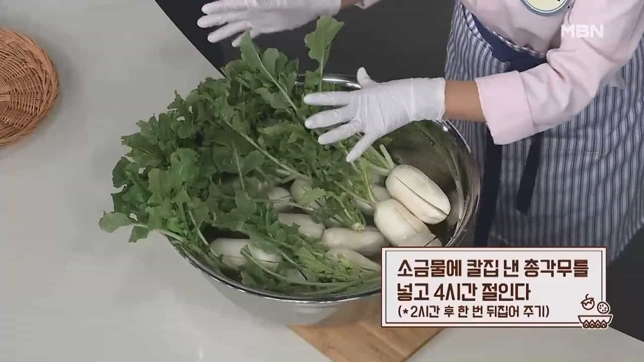 1. 총각무 2단(4kg)은 억센 무청만 뗀 뒤 깨끗하게 씻어서 준비합니다.